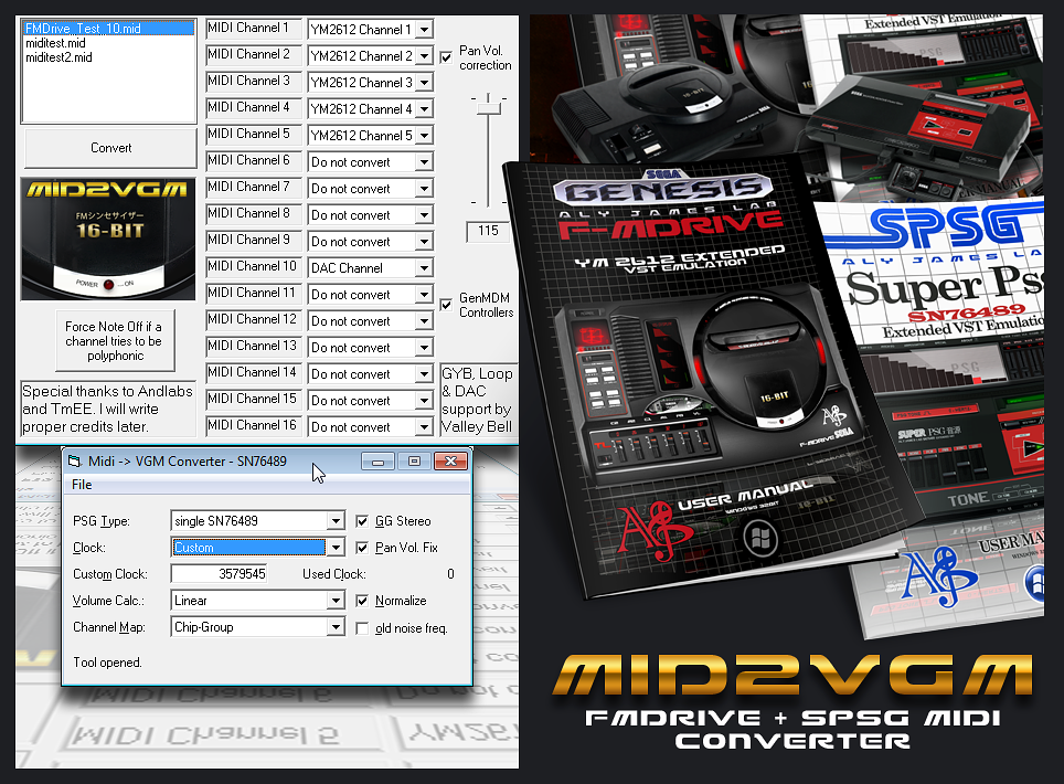 MIDI data into YM2612 and PSG Data commands hence controlling the Sega in realtime, like an